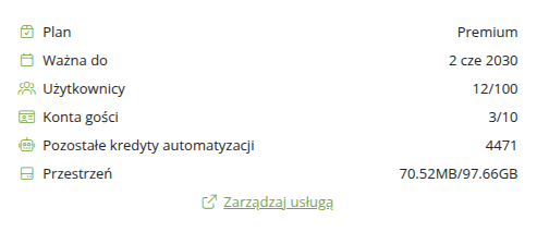 Dodanie informacji o pozostałych kredytach w automatyzacji widoczne jest w zakładce zarządzania usługą.