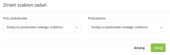 Po wybraniu opcji Zmień szablon zadań okno prezentuje się następująco: